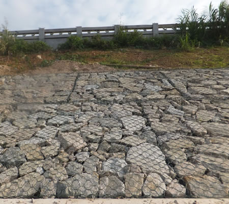 石籠網護坡還有較好的抗沖性。石籠網護坡要應用在河岸,海邊堤坡防護長期經受風浪拍打侵蝕但石籠防護工程的防沖系數是*般拋石防護工程防沖系數的兩倍,石籠護墊防護工程中的塊石即使產生位移,此時變形后的護墊結構將調整,達到新的平衡,而整體不會遭到破壞,從而有效保護岸坡土壤不遭破壞。因此安全系數高。